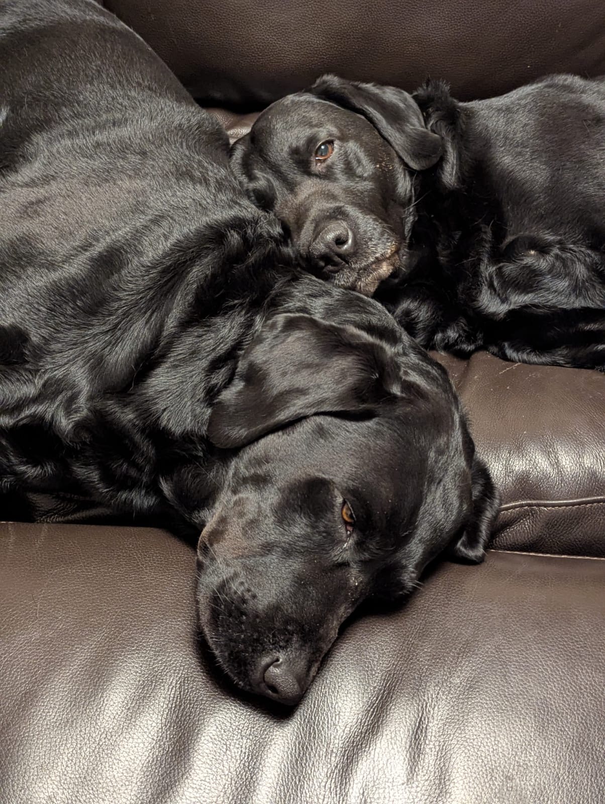Both boys are used to a rural life and enjoy walking in the countryside most days. They are well behaved and have been well looked after by their current owner. They pull on the lead a bit but their recall is good and they are never far away when off lead, which they are most of the time. They travel really well in the car. They have lived with older teenagers.